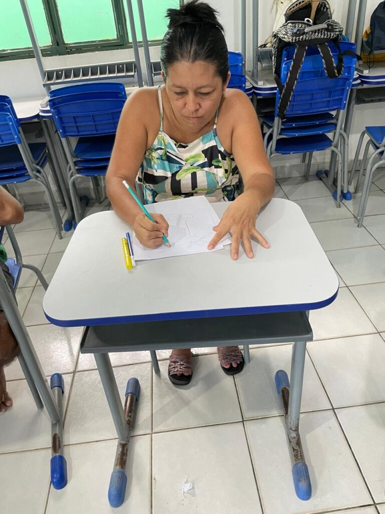 Por fim, no dia 1º de dezembro, a comunidade do Lago do Acajatuba recebeu a última oficina. Durante as atividades realizadas com membros da comunidade, observou-se um cenário marcado por dores, mas também por abertura, resiliência e disposição para experimentar novas formas de expressão.